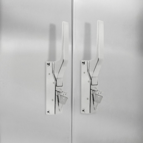 Cierre para puerta de cámara. Modelos 791 (sin cerradura) - 796 (con cerradura y acabado cromado o pintado). Para puerta frigorífica o neutra utilizada en muebles de frío comercial, muebles de bajo mostrador, muebles de auto servicio o para cualquier tipo de puerta sector HORECA. Intercambiable derecha/ izquierda. Fuerza de cierre de 15 Kg. Grosor de puerta mínimo 20mm.