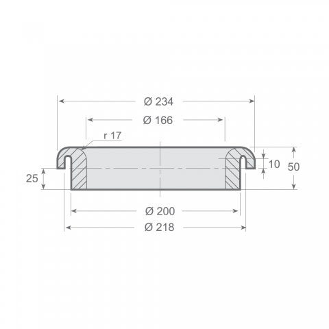 Goma de desbroce DG-1. Útil para mesas de trabajo donde se necesita rapidez y eficiencia en la evacuación a zona de desechos. Superficies redondeadas para facilitar la limpieza de su superficie. EPDM negro (Etileno Propileno Dieno tipo M ASTM). 234 x 166 mm.