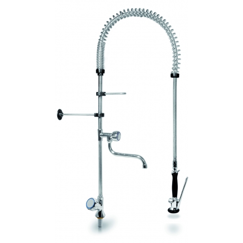 Equipo ducha ZN-1-B-LUX con grifo pomo 1 agua latón cromo con latiguillo malla/goma, tubo central latón cromo, sujeción a pared en zamak y gancho ducha zamak