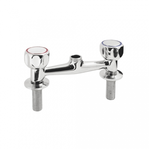 Equipo de ducha ZN-2-LUX con grifo pomo, 2 aguas, latiguillo malla/goma con tubo central fabricado en latón cromo. Sujeción a pared con gancho ducha en zamak.