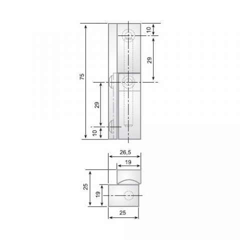 Bisagra en zamak 5 cromo brillo para puerta frigorífica o neutra 330